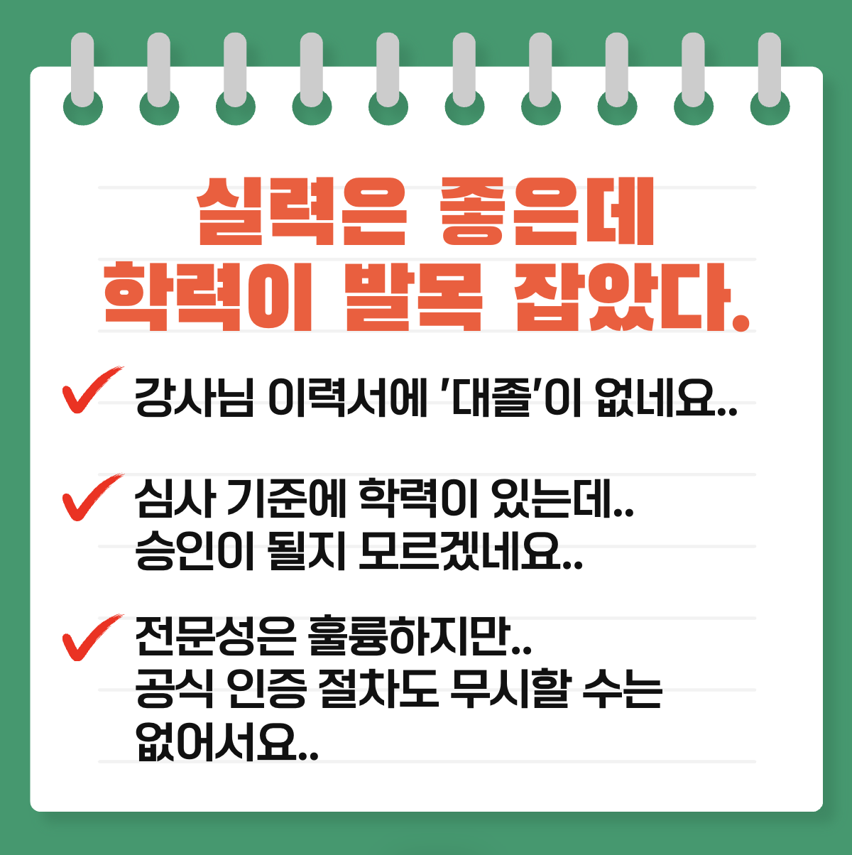 기업·기관은 강사 선정 시 ‘학력’을 아주 중요하게 봅니다.