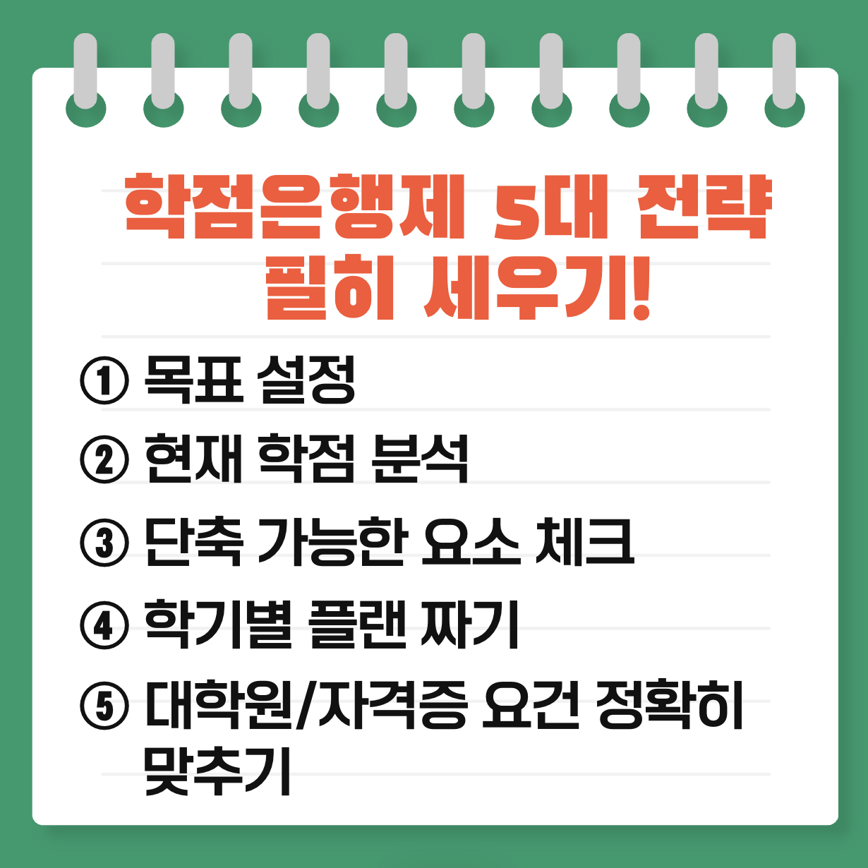정리해보면, 학점은행제 전략은 크게 5가지 단계로 나뉩니다.