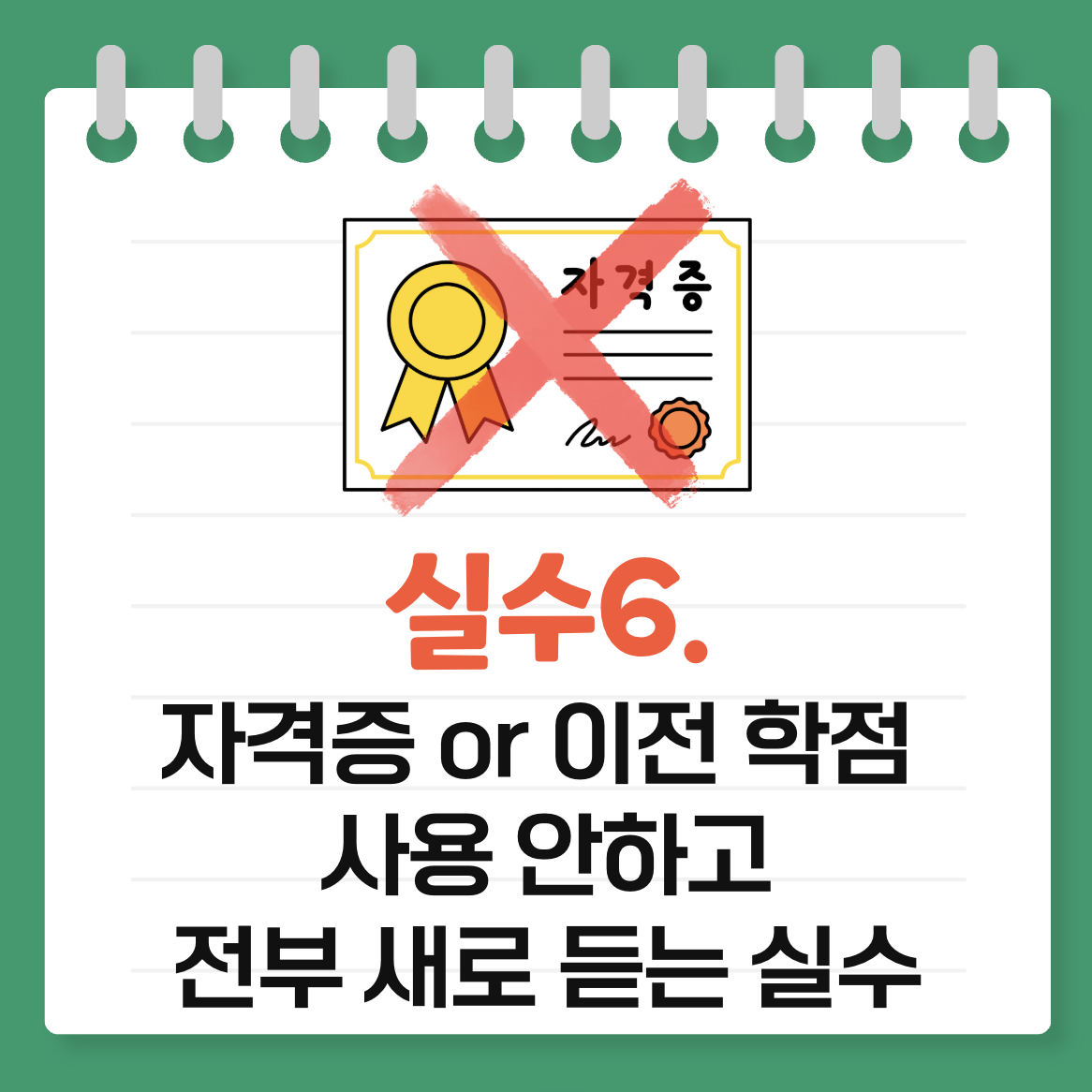 실수 ⑥ : 자격증·이전 학점을 안 쓰고, 전부 새로 듣는 실수 🎓