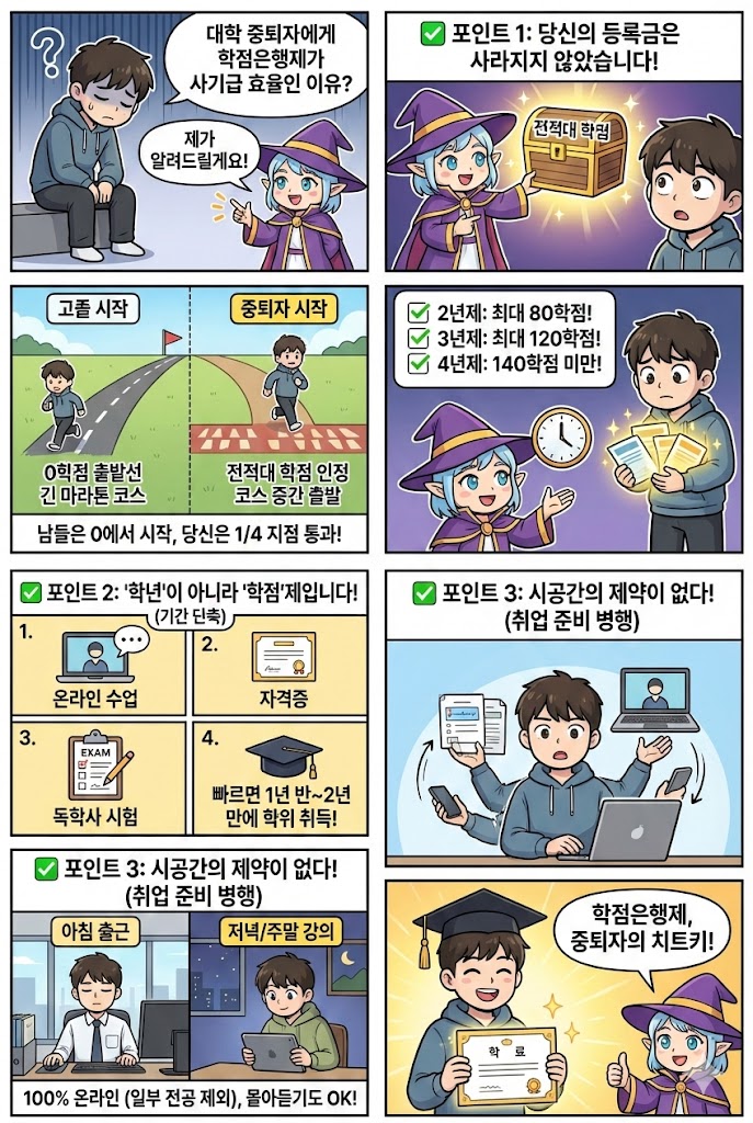 대학 중퇴 후 진로를 고민하는 분들을 위해, '학점은행제'를 활용한 가장 현실적이고 효율적인 인생 리셋 전략을 정리해 드립니다.