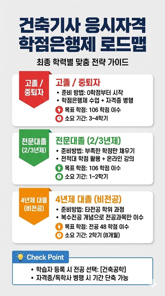 #건축기사 #건축기사응시자격 #학점은행제 #학은제 #비전공자건축기사 #건축기사자격증 #큐넷 #국가기술자격증 #106학점 #타전공48학점 #학점은행제건축공학 #고졸건축기사 #전문대졸건축기사 #건축기사필기 #단기합격 #온라인수업 #건축취업 #현장대리인 #건설기술인 #스펙업