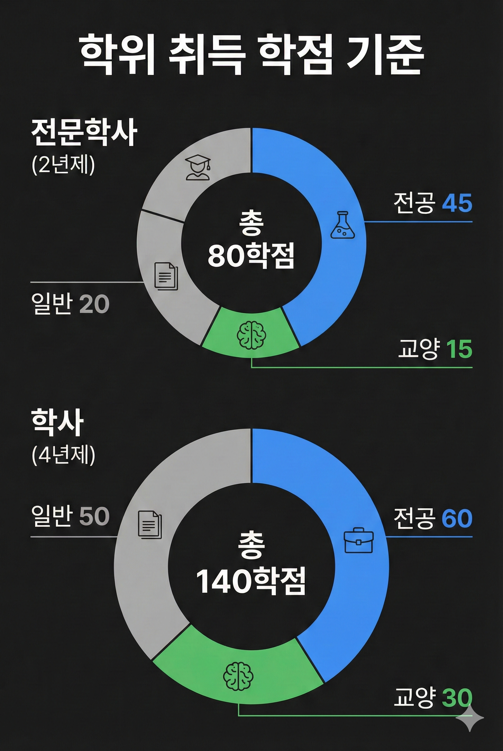 ✅ 주의할 점: 단순히 총 학점만 채우는 것이 아니라, 전공/교양 필수 학점 요건을 반드시 맞춰야 학위가 발급됩니다. 이 부분을 놓쳐서 학위 신청이 안 되는 경우가 있으니 학습 설계 시 주의해야 합니다.