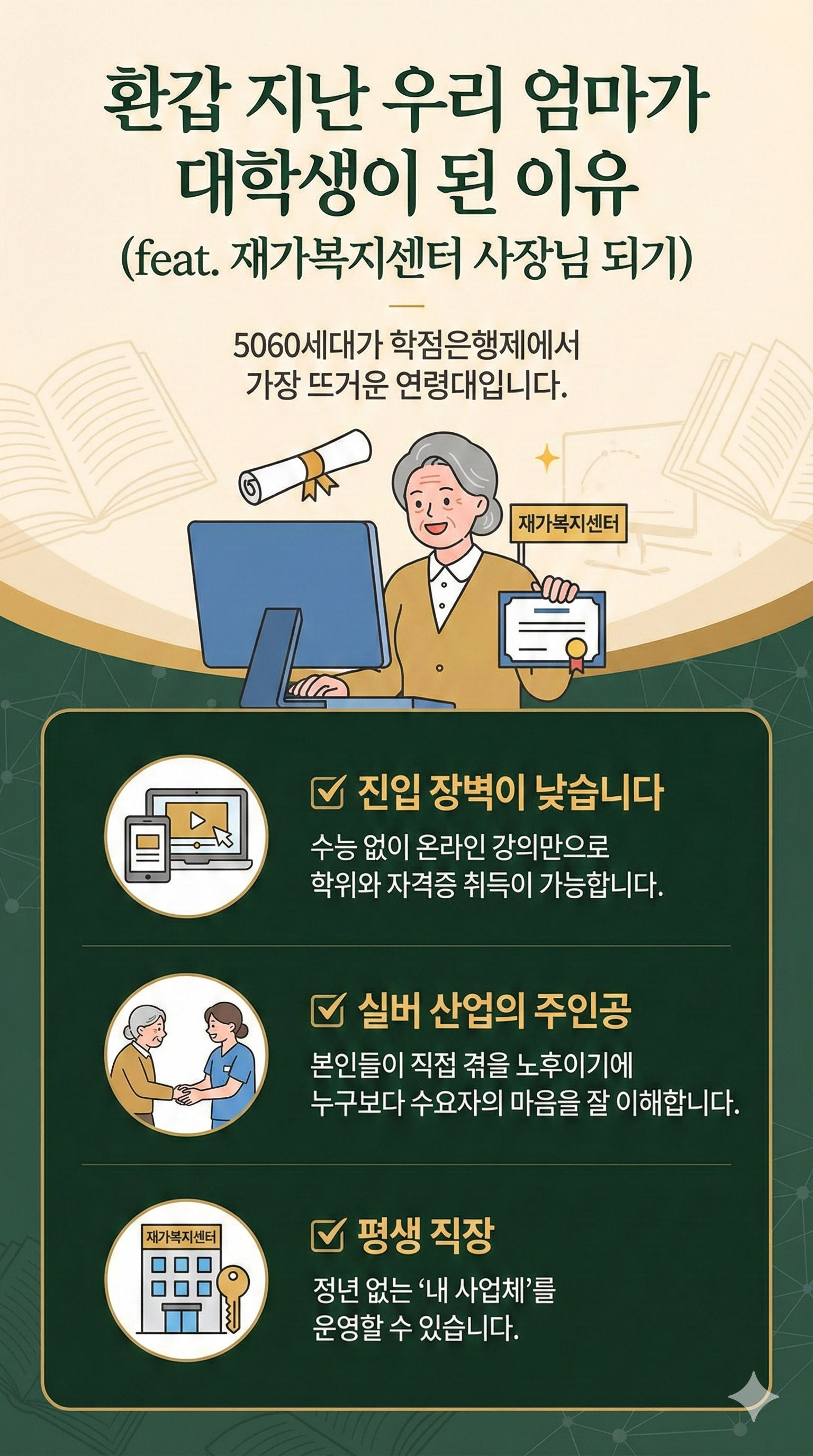 2. "환갑 지난 우리 엄마가 대학생이 된 이유"(feat. 재가복지센터 사장님 되기)