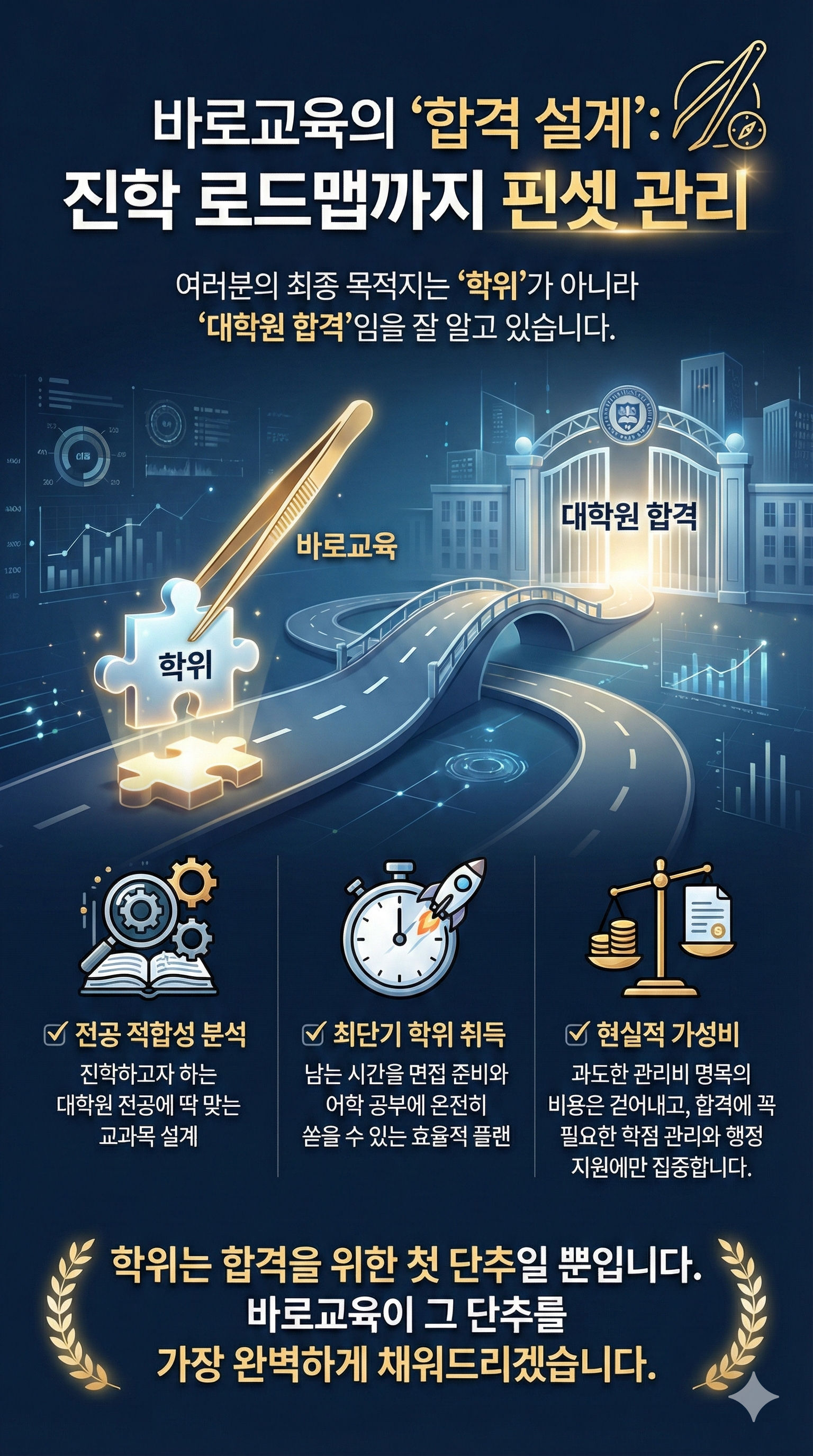 "학위는 합격을 위한 첫 단추일 뿐입니다. 바로교육이 그 단추를 가장 완벽하게 채워드리겠습니다."