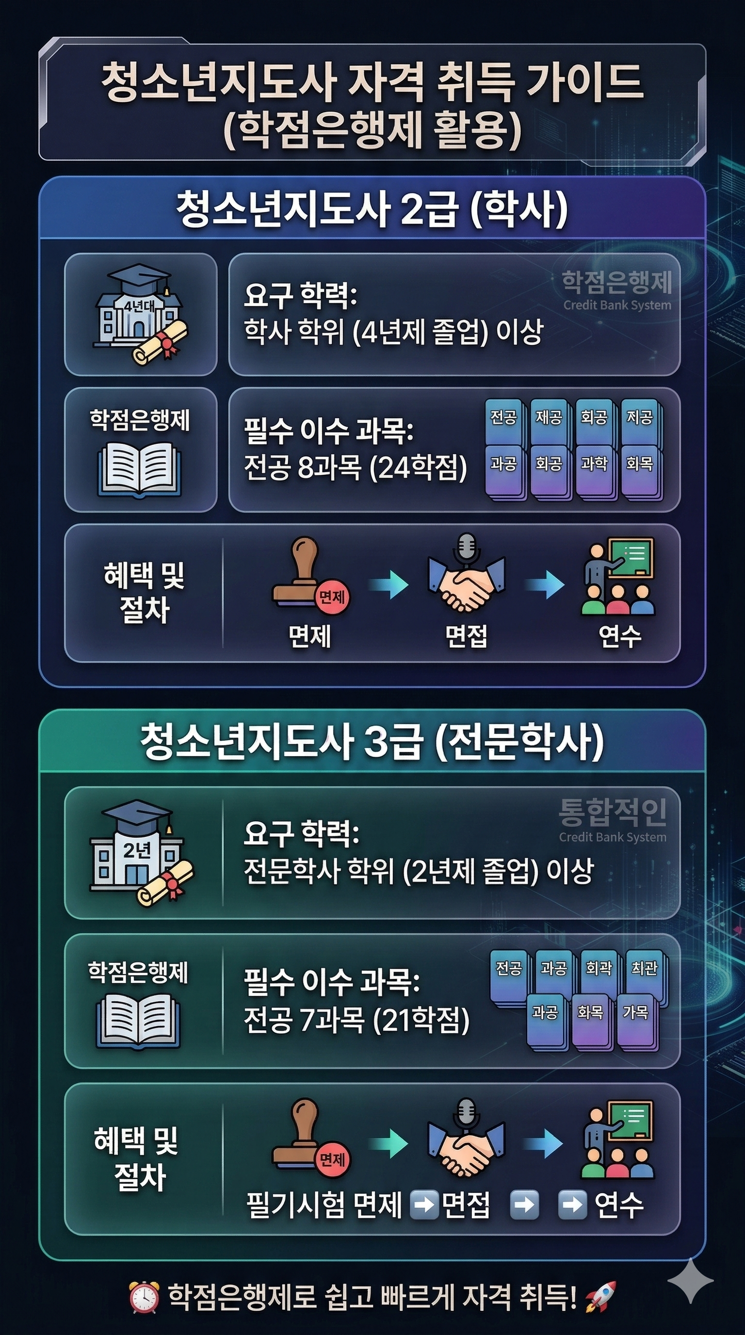 #청소년지도사 #청소년지도사2급 #청소년지도사3급 #청소년지도사면접 #청소년지도사필기면제 #필기면제자격증 #학점은행제 #학점은행제청소년지도사 #청소년수련관취업 #청소년문화의집 #여성가족부자격증 #국가공인자격증 #청소년복지 #학은제플래너 #15주완성 #비전공자자격증취득 #취업스펙 #유망자격증 #학점인정신청 #온라인학위취득