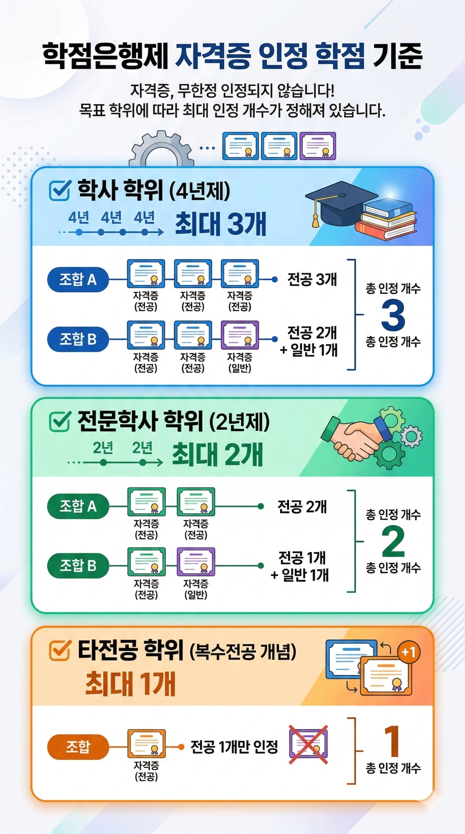 ✔️ 학사 학위 (4년제): 최대 3개 (전공 3개 OR 전공 2개 + 일반 1개)