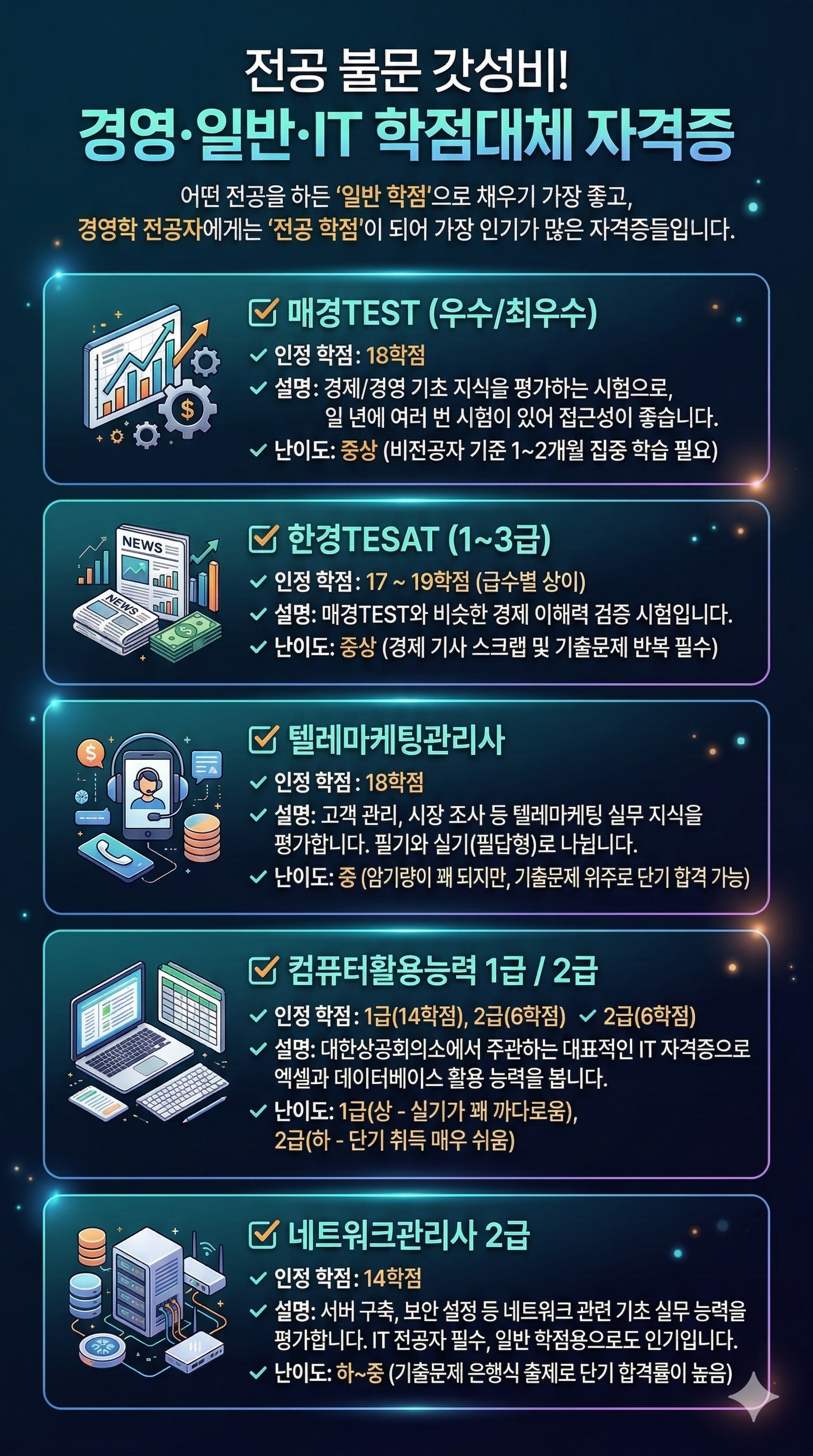 2. 전공 불문 갓성비! 경영·일반·IT 학점대체 자격증 (난이도 포함)