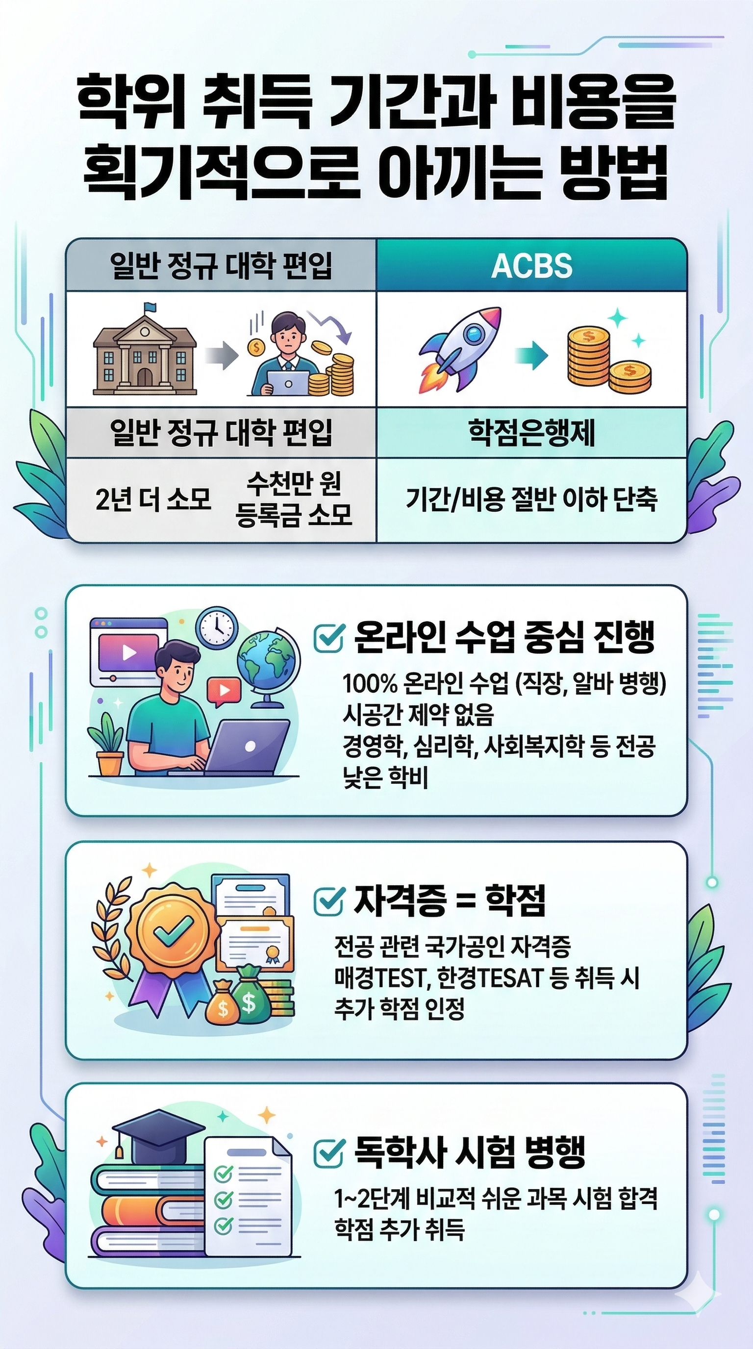전문대 졸업 후 스펙업, 학점은행제 활용, 시간, 비용 절약, 4년제 학위 취득