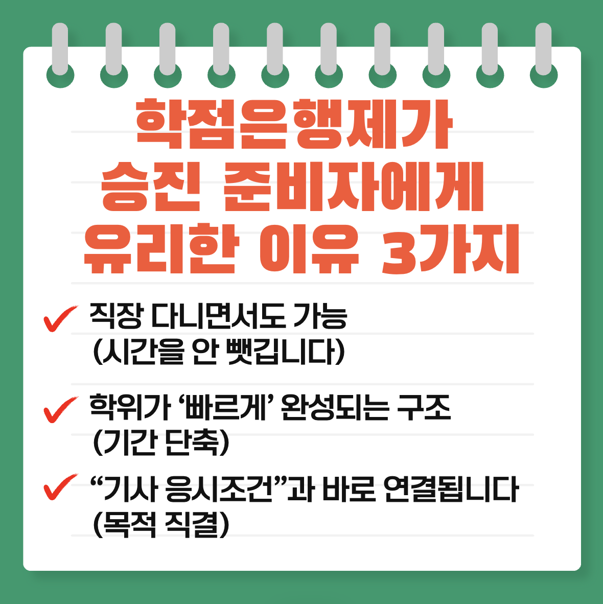 2. 학점은행제가 승진 준비자에게 유리한 이유 3가지