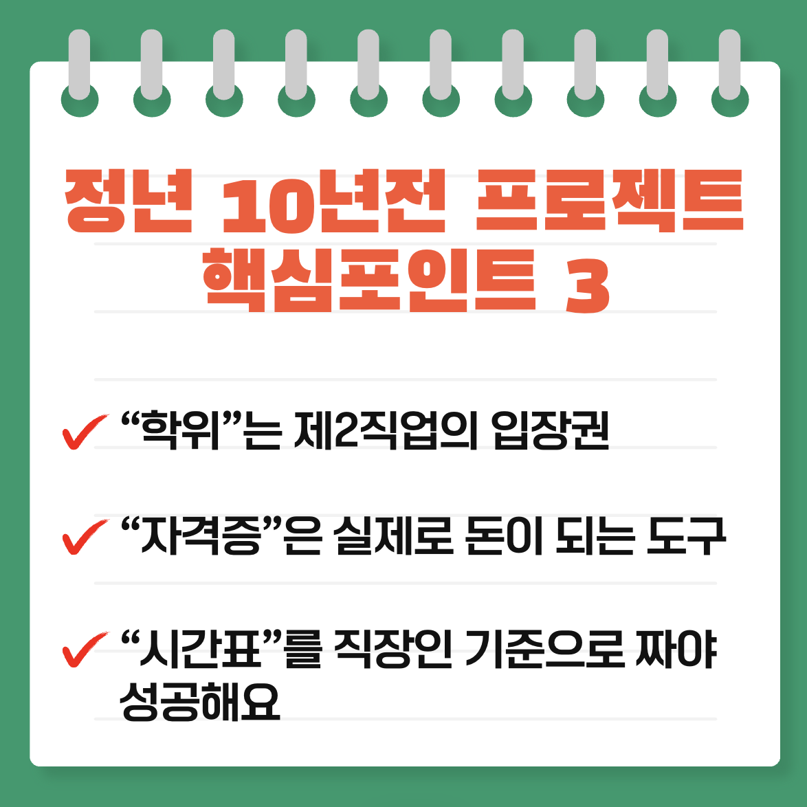 ‘정년 10년 전’ 프로젝트의 핵심은 딱 3가지예요