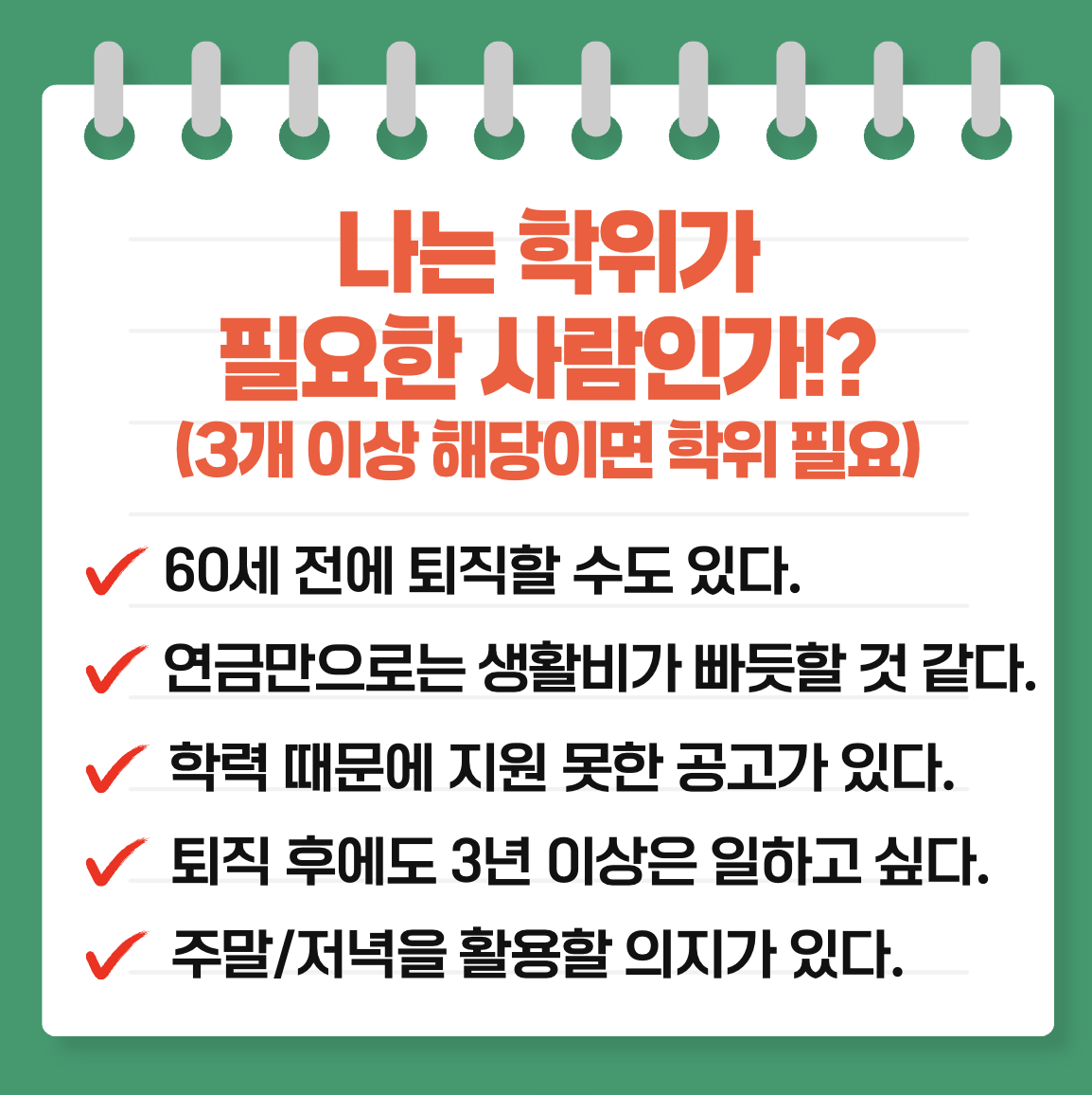 이 3개가 “예”면, 50대 학위는 충분히 의미가 있습니다.