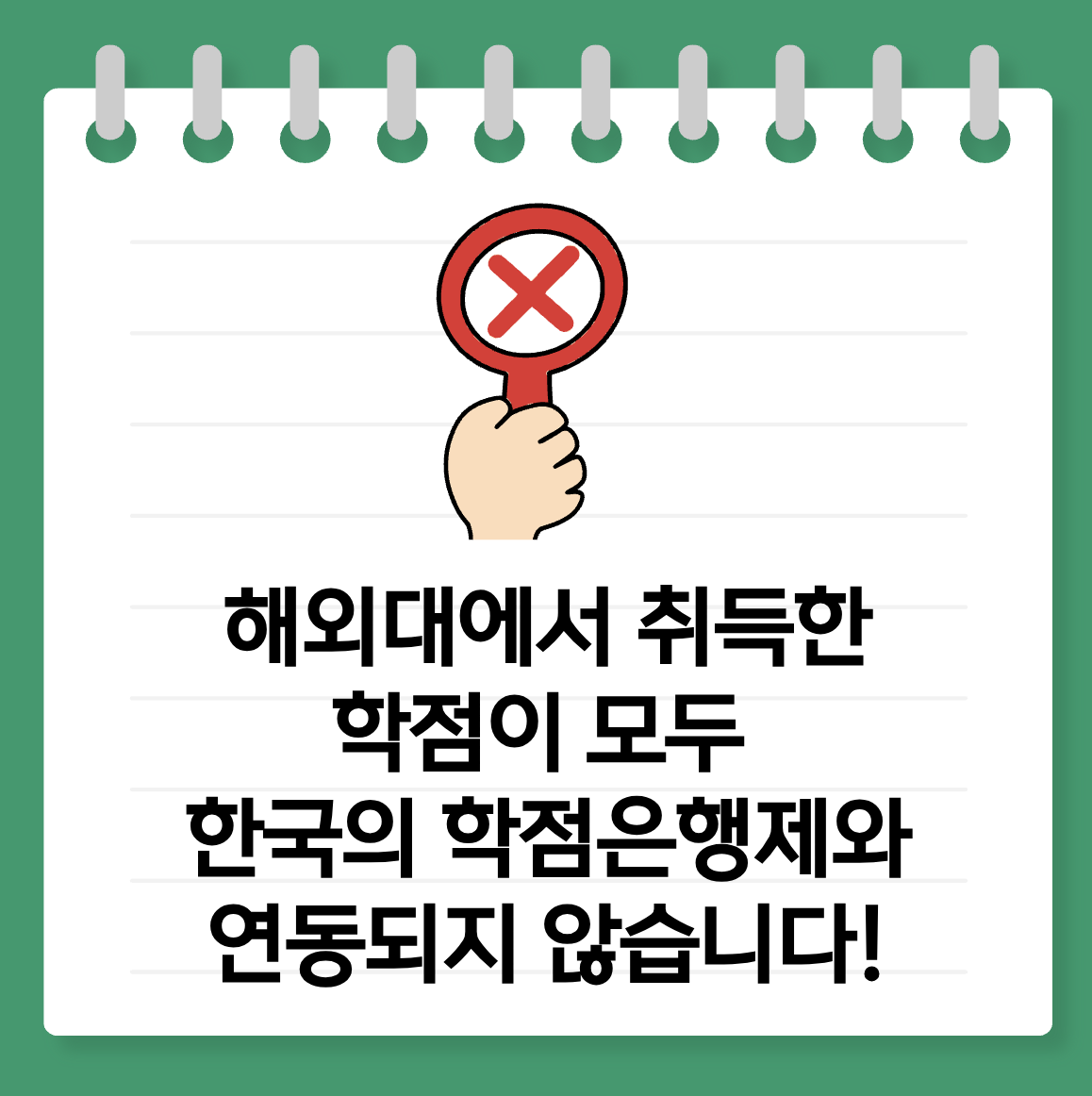 해외대 ‘이수 학점’은 학점은행제 학점으로 인정되지 않습니다. (중퇴/제적은 특히 불가)