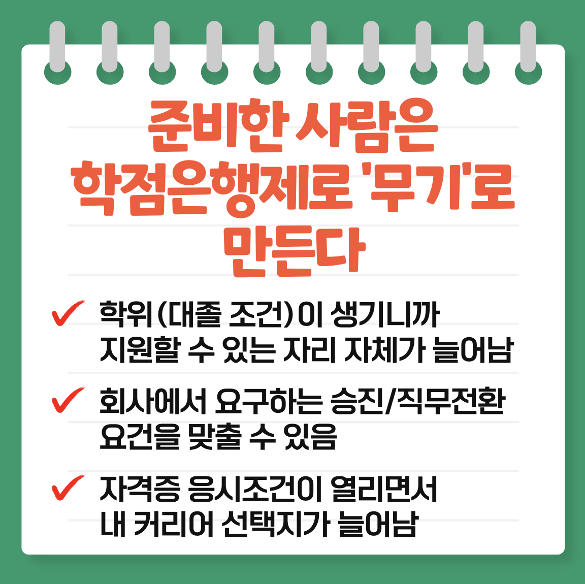 그리고 이때 가장 현실적인 도구가 학점은행제예요.