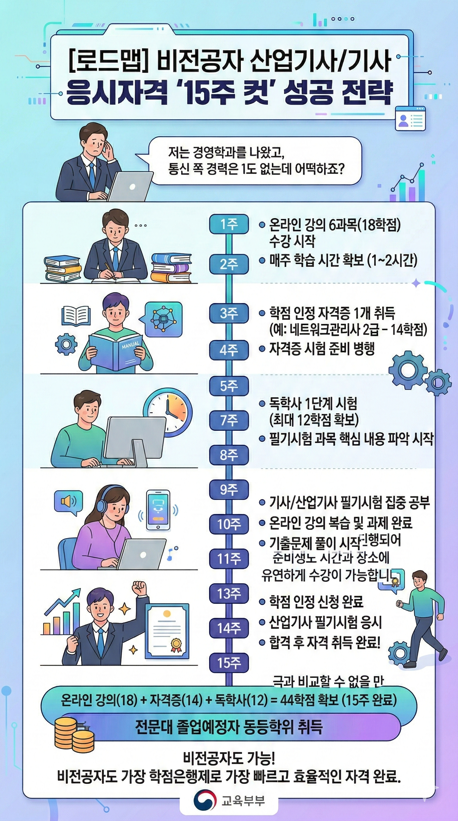 학점은행제를 통해 기사(106학점 이상) 및 산업기사(41학점 이상) 응시자격을 갖추신 분들은 훨씬 간편하게 서류를 제출할 수 있습니다.