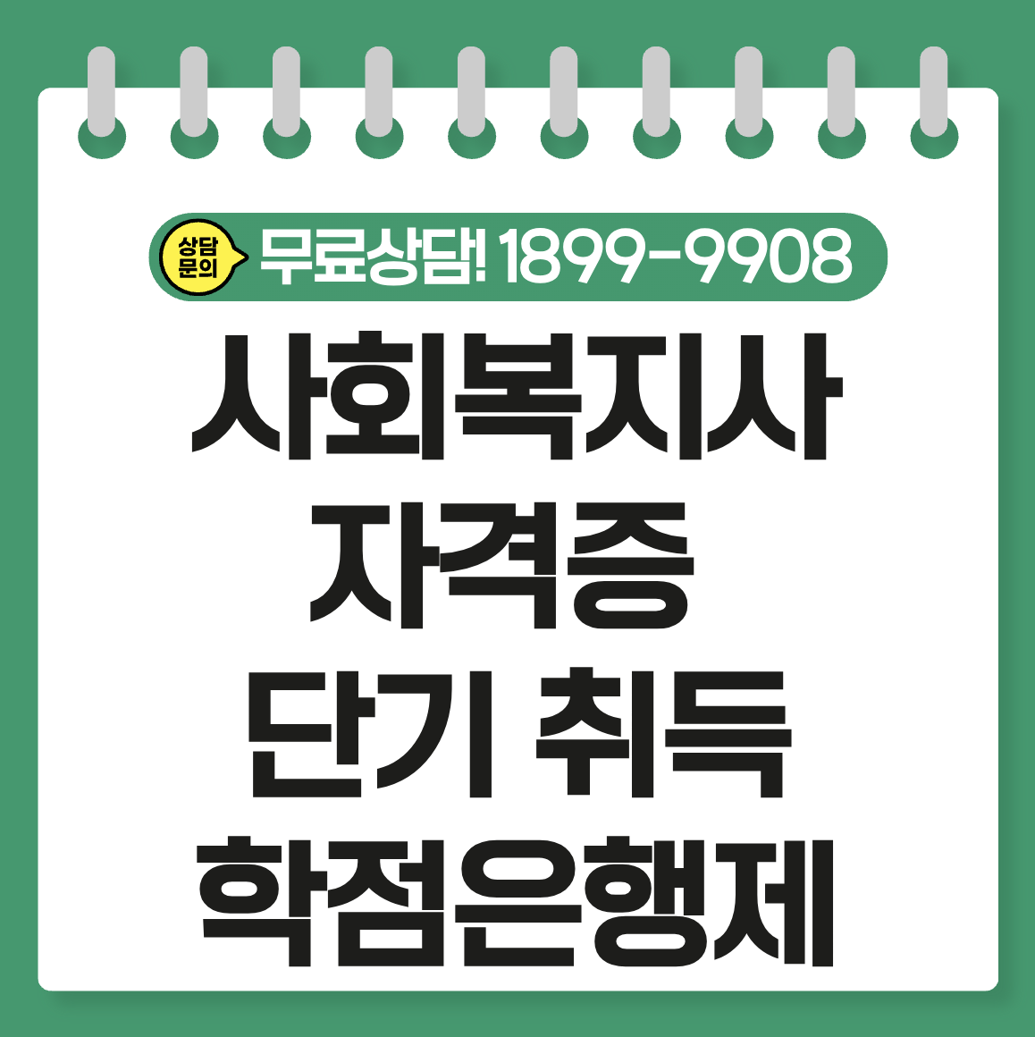 사회복지사 2급은 별도의 국가고시(시험) 없이 법으로 정해진 학력과 과목을 이수하면 발급받을 수 있는 무시험 국가공인자격증입니다.
