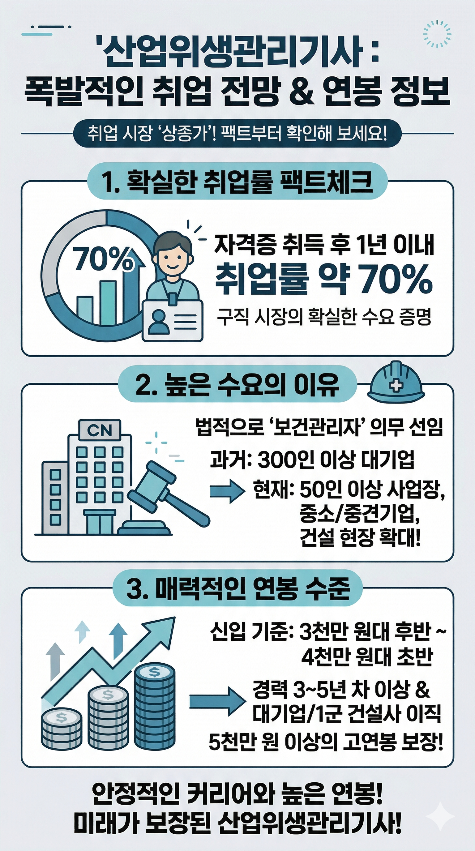 ✔️ 취업률 팩트체크: 자격증 취득 후 1년 이내 취업률이 약 70%에 달할 정도로 구직 시장에서 수요가 확실합니다.