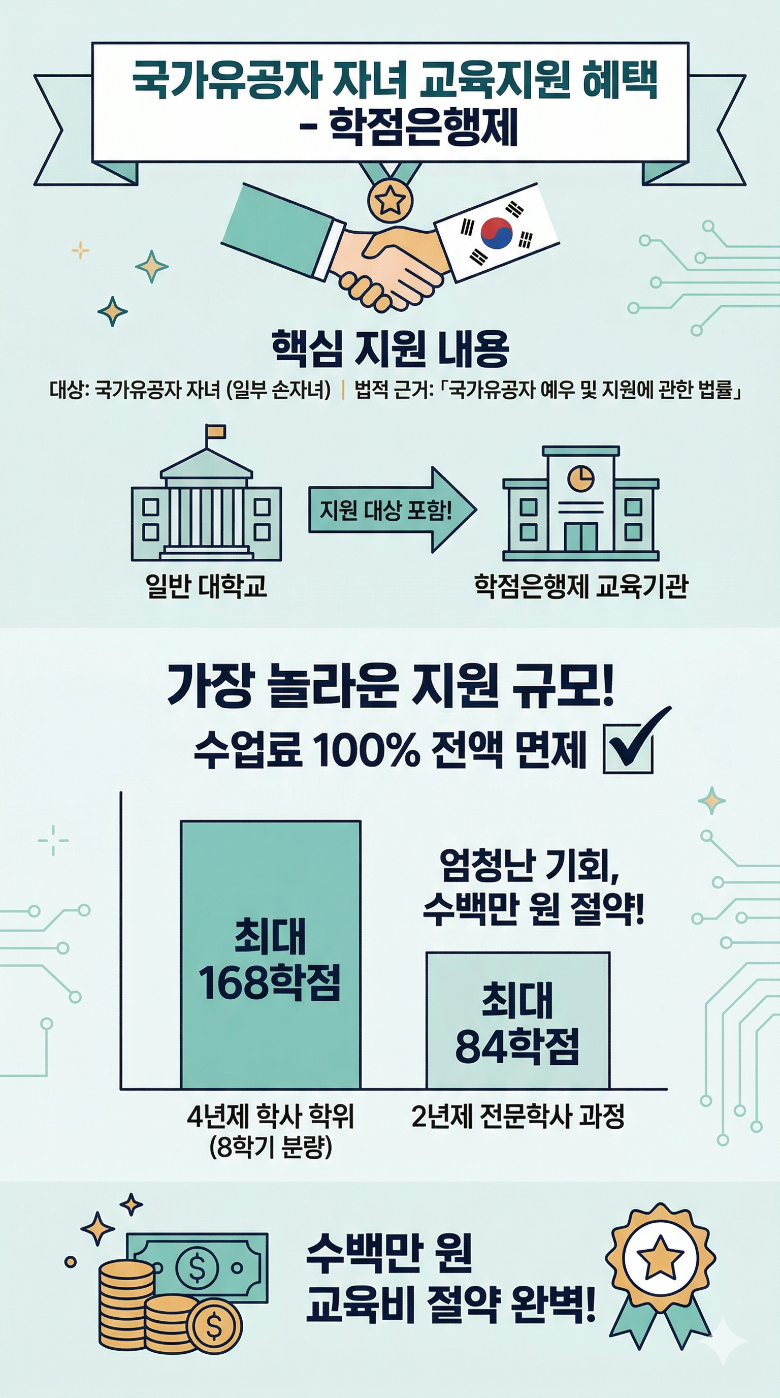 국가유공자 자녀분들에게 주어지는 이 교육 혜택은 단순한 금전적 지원을 넘어, 새로운 도전을 응원하는 국가의 뜻깊은 예우입니다.